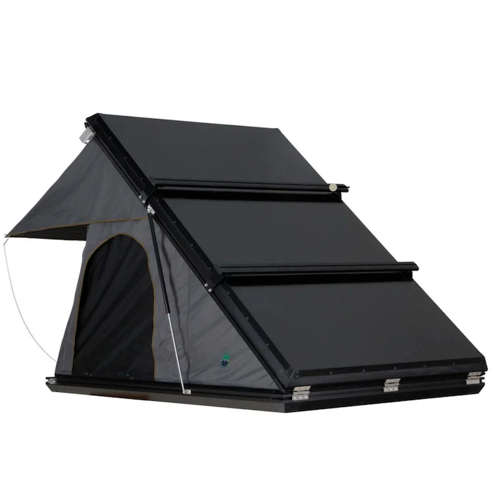 Features: The Overland Systems Mamba III Hard Sided Roof Top Tent is manufactured with Premium 600D Rip Stop Waterproof Tent Body, Window Screens are 120G Environmental Fadeless Breathable Gaze, 2 Nitrogen Gas Charged Struts that are 35/5” long X 1”, 1 Adjustable Interior Pop-Up Strut, Ballistic Nylon Pull Strap, Aluminum Aircraft Grade Handle, Marine Grade 304 Stainless Steel Hardware, Universal, Adjustable Aluminum Channel, Military Specked Weatherproof Seal, and the Base is 1” Aluminum Honeycomb Insulated.